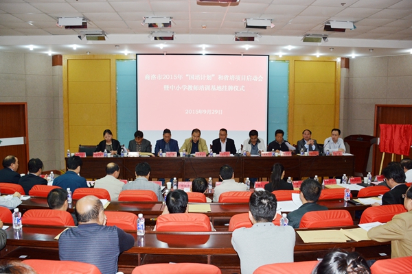 9月29日上午,商洛市2015年“国培计划”和省培项目启动会暨中小学幼儿园教师培训基地挂牌仪式在我校举行。副校长刘宝盈,商洛市教育局副局长周春荣,学校教务处、继续教育学院负责人,全国继教网项目主管张文倩等出席了启动会暨挂牌仪式。商洛市六县一区教体局及教研室相关领导,商洛职业技术学院、商洛中学、商洛市小学、商洛市幼儿园等教学单位及全国继续教育网代表参加了会议。