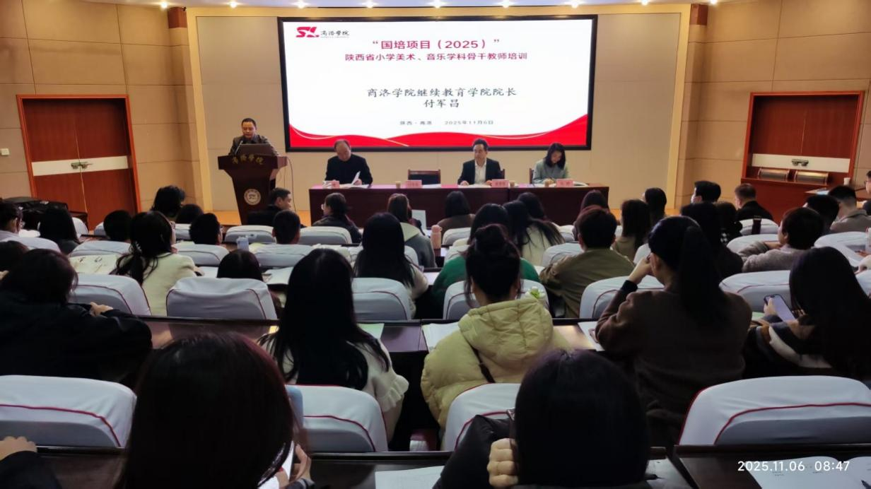 11 月 6 日 上午,由省教育厅主办,商洛学院承办的“国培项目(2025)” 陕西省农村小学美术、音乐学科骨干教师培训班典礼,在我校图书馆报告厅一楼举行。商洛学院继续教育学院院长付军昌、艺术学院院长唐曌堃、艺术学院首席专家张婷等领导及来自全省一百余名骨干教师参加活动。典礼由商洛学院继续教育学院培训中心主任王虎主持。