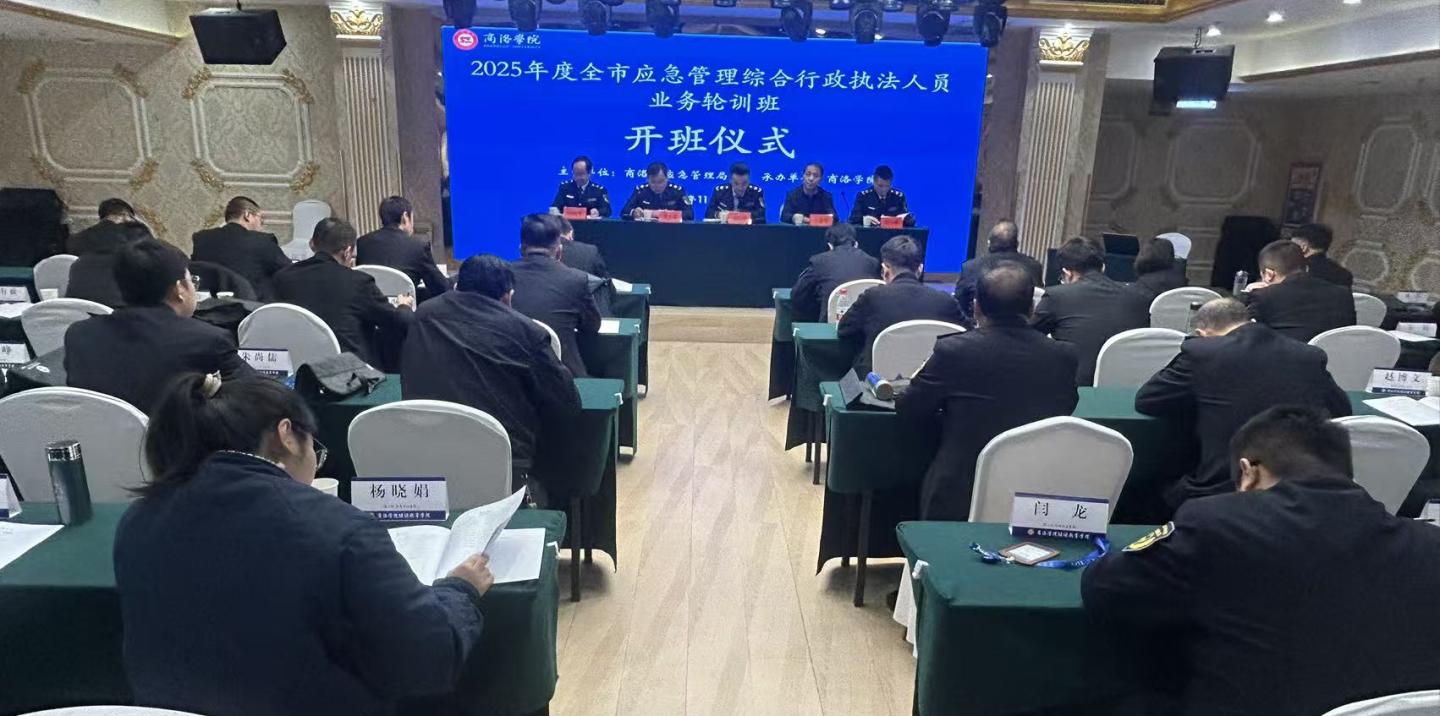 11 月 24 日上午,由商洛市应急局主办,商洛学院继续教育学院承办的商洛市 2025 年度应急管理综合行政执法人员业务轮训班在商洛学院继续教育培训基地会议厅顺利开班。商洛市应急局党委委员、副局长杨国锋,商洛学院党委副书记王新军等领导出席,全市60余名应急执法人员参加仪式。开班仪式由市应急局党委委员、执法支队支队长黄小锋主持。
