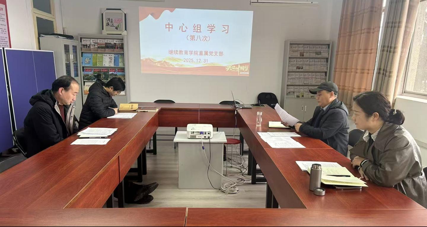 12月31日下午,继续教育学院直属党支部召开2025年第8次理论学习中心组集体学习会,支部全体党员参加。会议由支部书记付军昌主持。